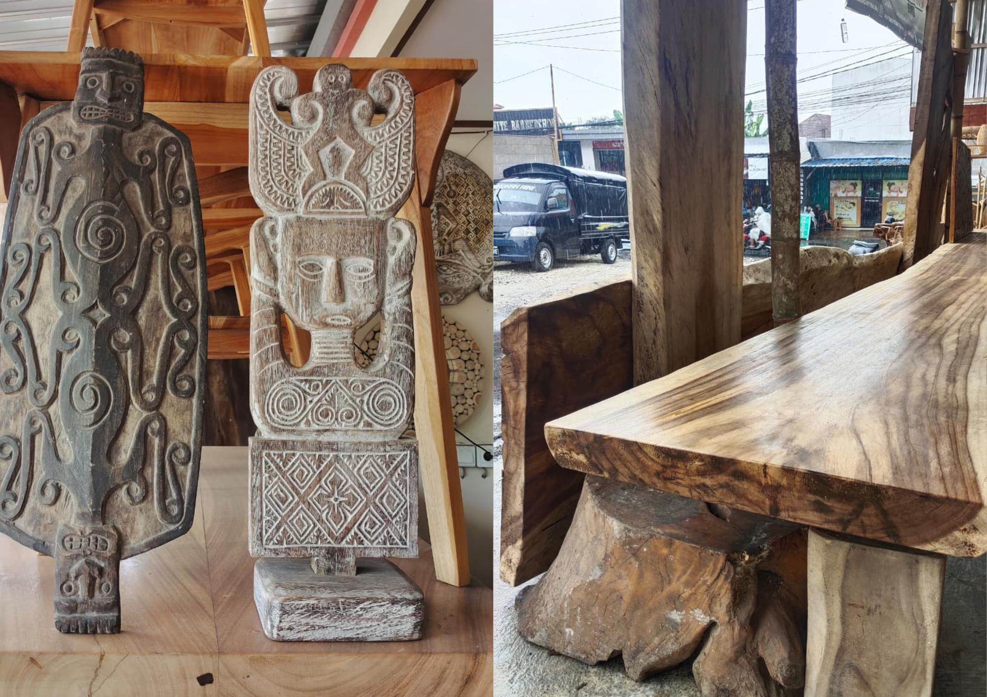 Upon stepping inside, visitors are greeted by the distinct ambiance of Timor: dark-toned woods, rugged natural textures, ethnic ornaments, and a warm atmosphere that feels familiar. Each piece of furniture seems to carry the story of its long journey—from the forests of Timor to its new home in Bali. **